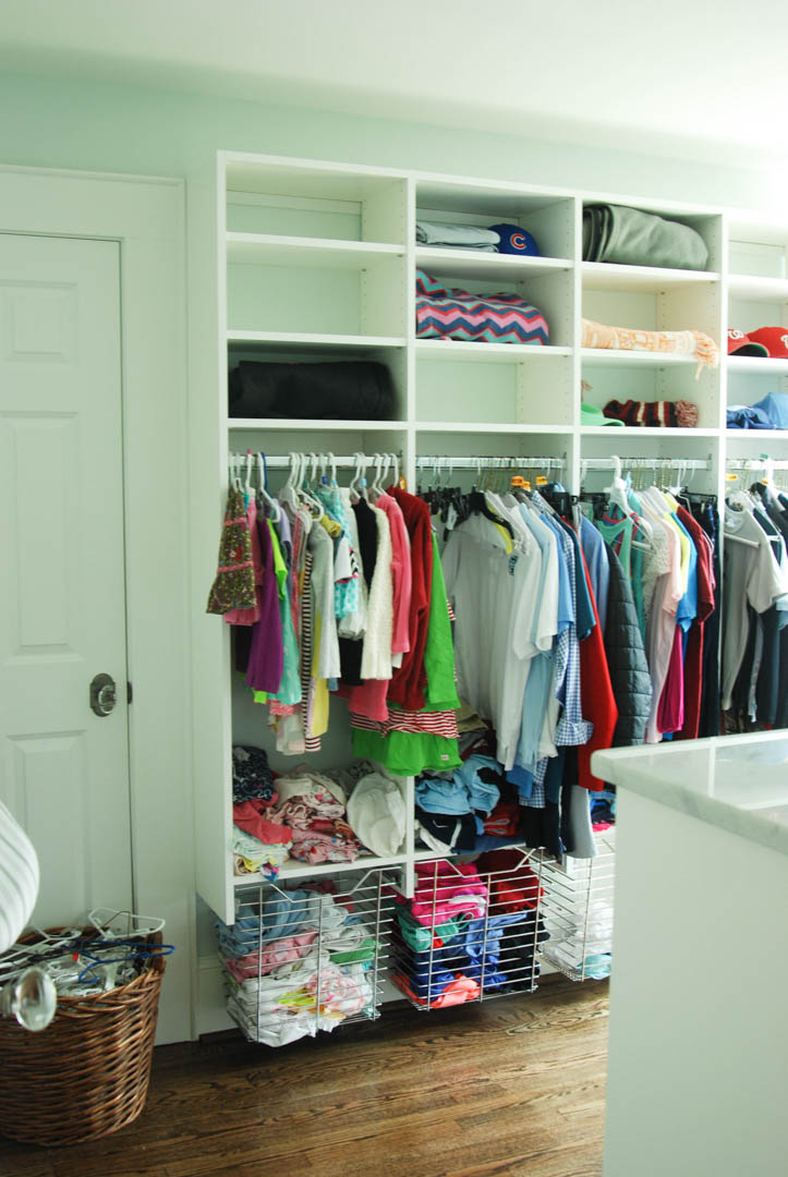 The baby’s room was replaced with an upstairs laundry room; complete with shelving and hanging space for each child.
