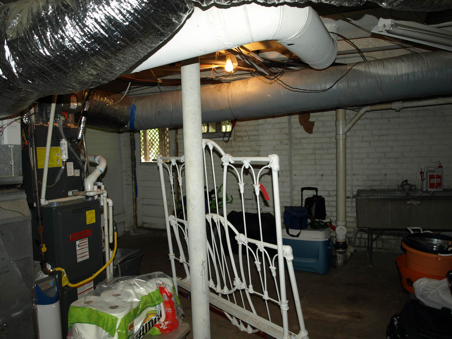 Reused, original (circa 1932) concrete laundry sink doubles as a giant ice chest during parties.